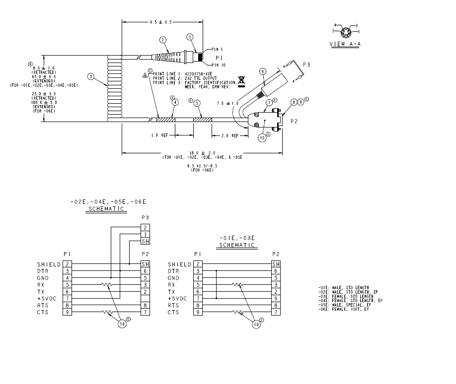 Honeywell 42203758-01E RS232-TTL Cable , Power on Pin 9; TX Data on Pin2 Connector; DB 9 Pin Male, 7.7. For use with the Honeywell 3800’s, 4600’s, 4800’s, 3820’s and 4820 scanners.